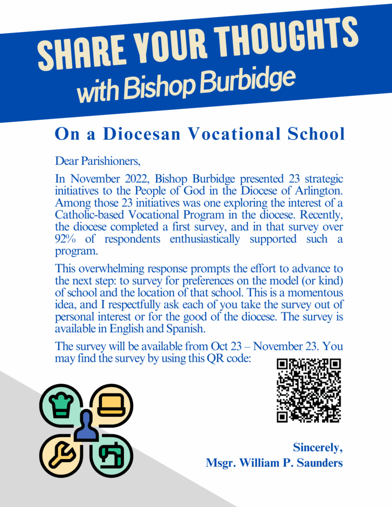 Share your thoughts with Bishop Burbidge on a Diocesan Vocational School! See the link below!