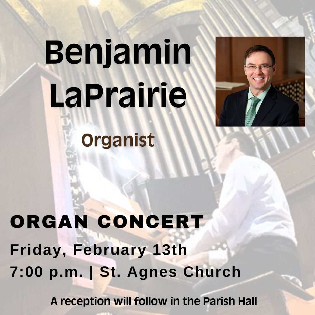 Join us for an organ concert by Benjamin J. LaPrairie. Benjamin is Associate Director of Music at the Basilica of the National Shrine of the Immaculate Conception in Washington, DC, where he is regularly heard accompanying daily, Sunday, and many televised Masses throughout the year.