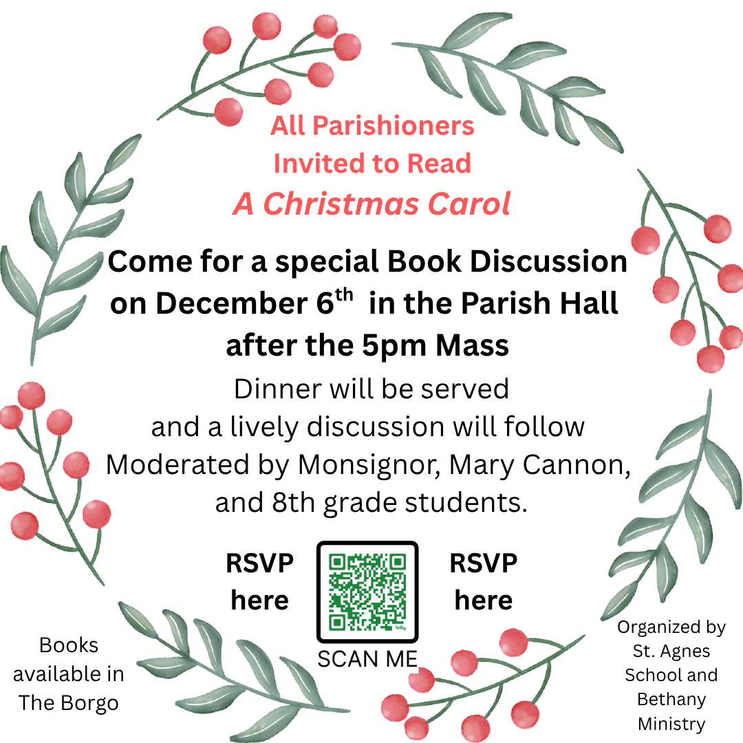 Come for a special book discussion moderated by Monsignor Saunders, Mary Cannon, and the 8th grade students. Dinner will be served.