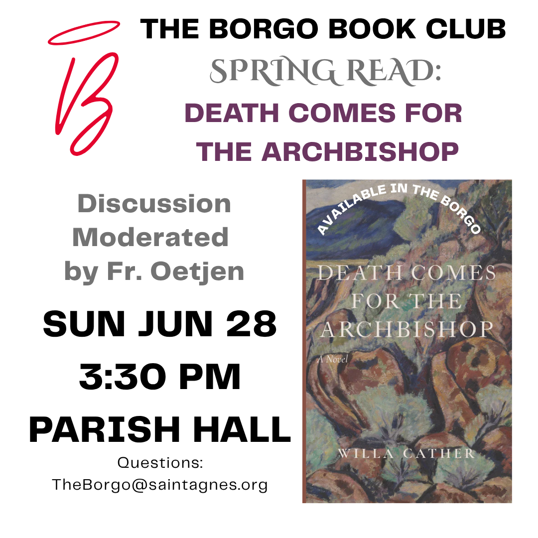 St. Agnes Parish Hall 1910 N Randolph St, Arlington, VA, United StatesRead "Death Comes for the Archbishop" by Willa Cather and joins us for discussion with Father Oetjen at 3:30 p.m. in the Parish Hall!
